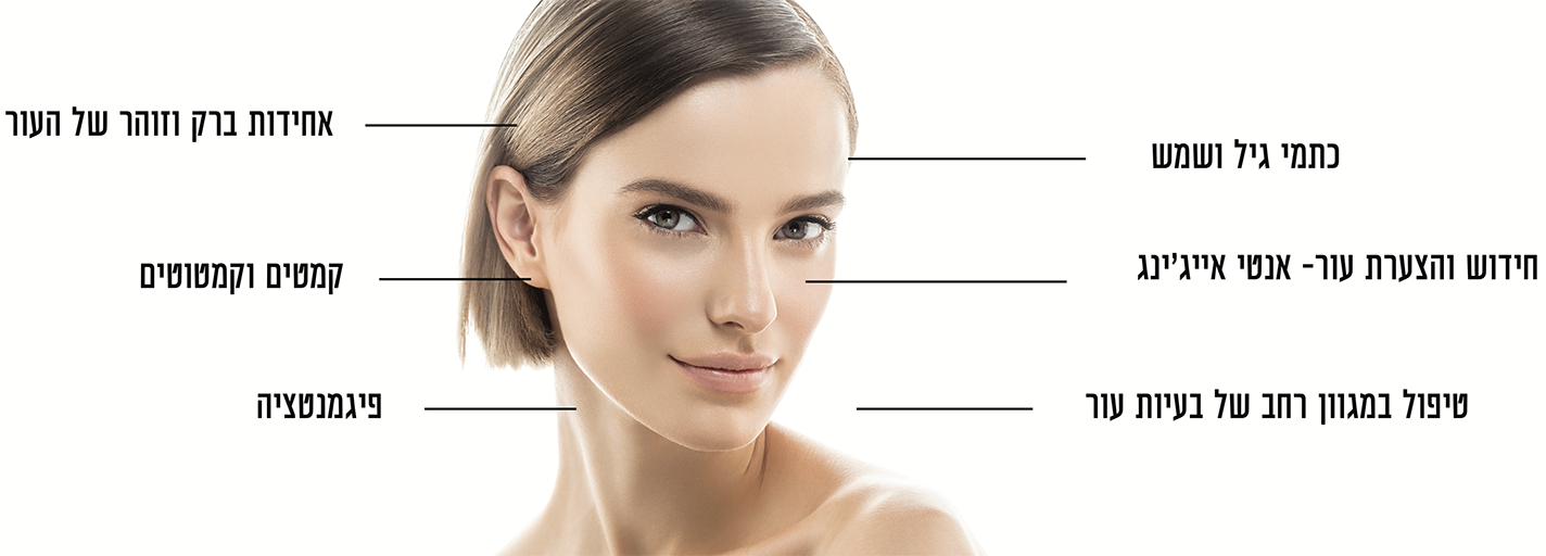 טיפול ייעודי בפיגמנטציה הורמונלית ופיגמנטציה סולרית.